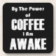 By the power of coffee I am awake! Funny text design about your love for always helpful coffee.