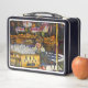 This is a standard metal lunchbox that appears to work just fine. We designed this box ourselves with an uploaded photo and custom text on the front and back. It looks absolutely beautiful except the front of the lunchbox is not centered like it shows in the photo. The print borders don't align with the inset flat part of the box where the preview photo online showed it perfectly centered in there. The back looks nice and centered though.