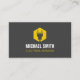 A modern, minimalist and professional business card with a logo of a silhouette of a power plug over a hexagon yellow shape. Perfect for electricians and those providing electrical wiring and lighting fixtures installation services. Personalise with your business information in the text templates provided.
