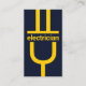An all dark blue cover is accentuated by an oversize yellow power plug which houses your job title "electrician" at the top. You can change this to suit your own service needs. This power plug goes on to power up a light bulb at the back of the card.