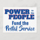 Power to the People, Fund the Post Office template postcard design. Our mail service is a powerful tool of and for democracy, a technological marvel, and the cheapest way to get your package or letter from here to there. The postal service powers small business, but it also powers birthday cards, election information and ballots, and ads from your grocery store. It is the last mile of delivery for rural customers throughout the United States. Save the Post Office.