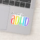 The contour cut of the sticker allows for a sleek, modern look that can easily adorn various surfaces like laptops, notebooks, or phone cases, making it a versatile accessory for personal expression. The design is not only an ADHD meme or saying but a celebration of the ADHD community, promoting awareness and acceptance in a fun and fashionable way.
