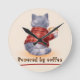 "Powered by Coffee" Cat Holding A Cup of Coffee Round Clock