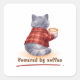 "Powered by Coffee" Cat Holding A Cup of Coffee Square Sticker