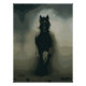 A majestic black stallion charges forward through a cloud of dust, symbolising freedom and raw power. This dynamic silhouette contrasts beautifully with a muted background, creating a bold and captivating scene for art lovers and equestrian enthusiasts alike.