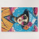 This puzzle features a colourful vector illustration of a powerful and iconic female trendsetter with a fashionable outfit, red lipstick, classic sunglasses and a flower decorated hat. This is a great & challenging puzzle for fashion-savy puzzlers.
