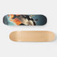 The skateboard has a visual design of an impressive orca jumping out of the water. The image he evokes is that of an orca fish, also known as killer whale, showing his power and grace while making a spectacular leap. The representation on the skateboard highlights the majesty and strength of the marine animal, capturing its dynamic movement and the sense of freedom associated with its leap. This design provides a unique and striking aesthetic to the skateboard, merging the beauty of nature with the urban style of sport.