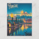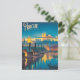 Experience the enchanting allure of Prague at night with this vintage-style postcard. Featuring the city's illuminated landmarks, such as the Charles Bridge and Prague Castle, the design evokes a magical ambiance under a starlit sky. Perfect for collectors of romantic European travel art and vintage cityscape keepsakes.