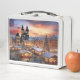 This is a standard metal lunchbox that appears to work just fine. We designed this box ourselves with an uploaded photo and custom text on the front and back. It looks absolutely beautiful except the front of the lunchbox is not centered like it shows in the photo. The print borders don't align with the inset flat part of the box where the preview photo online showed it perfectly centered in there. The back looks nice and centered though.