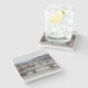 The coasters are gorgeous, a quality feel and heavy weight. They look like a precious archeological find. A rustic stone juxtaposed with a modern floral black and white print. I like the way the print goes slightly imperfect on the cut stone edges giving them a kind-of natural beauty.