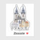 This sticker features a watercolor portrait of the Tyn Church in Prague, Czech Republic.