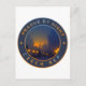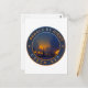 Badge of Prague emblem with Charles Bridge over Vltava river at night, rounded shape, car sticker style.