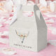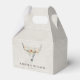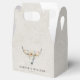 Enchant your guests with our Rustic Wedding Favour Box. Featuring the bride and groom's names and wedding date in an elegant western font, this box is adorned with a stunning watercolor cow longhorn skull with prairie flowers and foliage. Ideal for adding a touch of vintage charm and rustic elegance to your country-themed celebration.