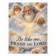 An atmosphere of divine joy and inspiration into your home with this stunning celestial poster the artwork features multiple smiling heavenly figures with flowing white hair and beards radiating warmth and wisdom from a mid soft glowing clouds. A prominent banner across the center carries the powerful message be like me praise the Lord serving as a cheerful daily reminder of faith and gratitude.