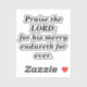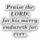 This "Praise The Lord Scripture Minimalist Black & White Sticker" is inspired by the King James Version of 2 Chronicles 20:21, "Praise the LORD; for his mercy endureth for ever." This small Bible Verse sticker includes a Scripture from GOD's Word, a spiritual, motivational, uplifting saying. This inspirational short Christian quote is illustrated using a minimalist design style theme of black and white.