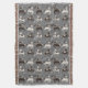 This unique throw blanket has a pattern of black and cream coloured prancing circus horses in a folk art style. The horse pattern is placed on a medium grey background.