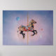 A dramatic black carousel horse with trappings in jewel tones of royal blue, deep red, purples and accented with carved pink rosettes. Feel free to personalise your purchase to make it your own.