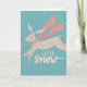 A non-denominational flat holiday/ Christmas card featuring hand-lettering that reads "let it snow" and a whimsical illustration of a scarfed reindeer in mid-prance through the snow. Send one to all you hold "deer" this holiday season!
