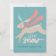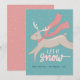 A non-photo, non-denominational flat holiday/ Christmas card featuring hand-lettering that reads "let it snow" and a whimsical illustration of a scarfed reindeer in mid-prance through the snow. Send one to all you hold "deer" this holiday season!