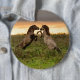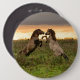 Button of two prancing wild Konik horses at sunset in the National Park Oostvaardersplassen in the Netherlands.