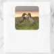 Sticker of two prancing wild Konik horses at sunset in the National Park Oostvaardersplassen in the Netherlands.