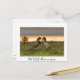 Postcard of two prancing wild Konik horses at sunset in the National Park Oostvaardersplassen in the Netherlands with a white border and the text: 'Wild horses'.