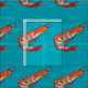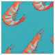A fabric design featuring a cute kitsch original illustration design of a prawn / shrimp seafood. This fun design is against a customisable blue background. The background may be changed to another colour of your liking.