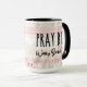 This charming coffee mug features a delicate design of soft pink stripes alternating with gentle floral patterns. The flowers, in various shades of pink, add a touch of elegance and whimsy to the mug. The words “Pray Big, Worry Small” are beautifully printed in a graceful script, serving as a daily reminder of positivity and faith. The overall aesthetic is soothing and uplifting, making it a perfect companion for your morning coffee or tea.
