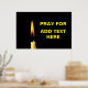 Burning wax candle of yellow colour against black background and a text Pray For ADD TEXT HERE. You can add your own text. To express sympathies. Poster.