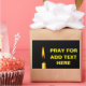 Burning wax candle of yellow colour against black background and a text Pray For ADD TEXT HERE. You can add your own text. To express sympathies. Rectangle sticker