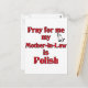 This is a great way to show your Polish pride with items such as Polish t-shirts, aprons, hats, posters and much more saying "Pray for me my Mother-in-Law is Polish."