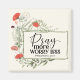 Magnet with inspirational quote scripture depicts a floral watercolor wildflower design with simple red poppies and greenery. It features an encouraging Christian quote, "Pray More Worry Less." taken from Bible Verses Philippians 4:6-7.