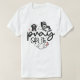 This white t-shirt features the word "pray" in a flowing black script, with "on it" in smaller black lettering below. Above "pray" are black graphic elements including praying hands with a cross, and a butterfly with heart-shaped details on its wings. Small red heart accents are scattered around the design. This shirt encourages prayer and faith.