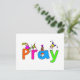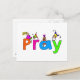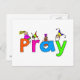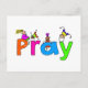 Cute cartoon illustration of happy and diverse little boys and girls climbing over giant letters of the alphabet that spell out the word PRAY. Image available on various gifts and products. Postcards.