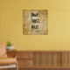 Pray Trust Wait inspirational motivational poster. Rustic inspired background with vintage scroll accent.