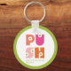 Girly PUSH - Pray Until Something Happens keychain with a colourful orange and pink PUSH with simple daisies.