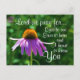 Beautiful inspirational quote postcard depicts a purple Echinacea in bloom and features a Christian prayer to God, Lord we pray for eyes to see, ears to hear and a heart to know You. The prayer/greeting on the back of the card can be modified or deleted for a blank card._