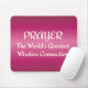 God is only a prayer away! That's definitely the world's greatest wireless connection. Lovely shades of pink on this sleek mousepad. Be sure to see our other products with matching designs.