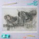 In the tranquil embrace of solitude, the drawing titled “Serene Supplication” captures a poignant moment of spiritual communion. The subject, a graceful figure draped in modest attire, is seated upon weathered steps, her hands gently resting on the open pages of her Bible. Her posture is one of humble reverence, her thoughts lifted heavenward as she seeks comfort and guidance amidst grief. The presence of the cross in the background serves as a beacon of hope, symbolising faith’s enduring light during life’s darkest trials.