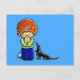 Original praying boy and black/tan smooth Dachshund dog drawing and design by Andie of Off-Leash Art. Great layout in bright bold happy colours like aqua blues, lime greens and juicy orange.