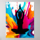 Yoga Prayer pose, woman with a braided hair bun colourful Spiritual Art. This design can be printed on many different types of paper, canvas, wood, choose the perfect look for your walls. This design is part of my Spiritual, Cosmic and Mystic collection. The woman holding the pose stands out beautifully with the splashy paint colourful background. This stunning print can easily be put into a frame to elevate it’s look. It would look beautiful in any room of your house, in the workout room, or office. This pose and vibrant colours encourages wellness.