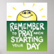 Christian Poster with a reminder to pray when starting your day. Design has a yellow sun and white text. Great for any room decor and Sunday School Classes