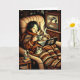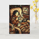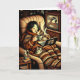 I sweet card to let someone know you are thinking about them. An Asian girl in her recliner with her cat, laptop and a warm cup of coffee and watching tv on a day of not feeling so well. Warm soothing vintage colours in an ai illustration showing what it is like to have chronic illness and pain.
