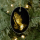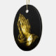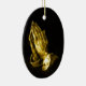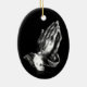 praying hands with a slight impressionist style bronze or gold coloured on one side and black and white on the reverse ornament. Great from hanging from a cars rear view mirror or the traditional Christmas tree etc