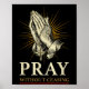 Praying Hands Jesus Cross Rosary Faith Devotion Pr Poster
