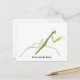 Painting of a Praying Mantis by Cheryl Paton, is printed on custom postcards. There is a template placeholder for your text on the front of the postcard.
