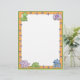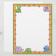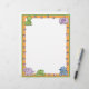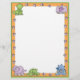 This cute cartoon letterhead features dinosaur foot prints on an orange border and baby dinosaurs in the upper corners and along the bottom border.