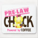 Pre-Law Chick t-shirts and gifts featuring an adorable big-headed chick with chocolate and pink bow holding a polka dot cup of coffee with funny slogan “Powered by COFFEE.” Perfect gift idea for that coffee-drinking pre-law chick on your list!