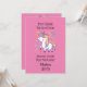 A cute pink girly unicorn preschool, kindergarten, 1st grade, second grade, etc. graduation party 'moving up to next year" party invitation. All fields on the front and back are editable and the image on the front can be changed to your child's photo if you wish.