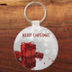 A noble Christmas illustration: A red gift box with a red Christmas ball, ribbon and red pearls on a light white-grey bokeh background with stars.